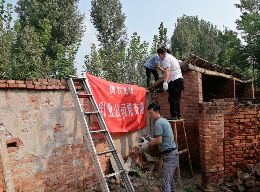 貧困戶魏澤美家是博農(nóng)乳業(yè)公司對(duì)口扶貧幫扶戶,公司黨支部了解到魏澤美家中廁所年久失修,給其生活造成不便的實(shí)際情況,經(jīng)過(guò)研究,決定發(fā)揮公司支部黨員水電、建筑等人才優(yōu)勢(shì),組織黨員直接參與其廁所整修工作。30日下午,乳業(yè)公司黨員12人克服天氣炎熱、工作環(huán)境條件復(fù)雜的多重困難,全身心投入到廁所整修工作中,有的撤除房頂,有的焊接梁架,有的開(kāi)挖水溝,有的連接電路,用整整一下午時(shí)間,完成了房頂撤除更換、連通水電的任務(wù),幫扶工作受到貧困戶魏澤美的交口稱贊。